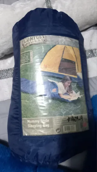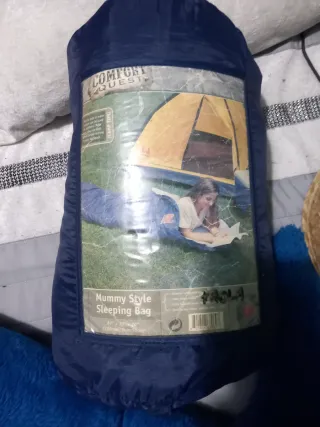 Saco de dormir estilo momia de la marca Comfort Quest. Es de color azul y está diseñado para actividades al aire libre. - Estilo: Momia - Marca: Comfort Quest - Color: Azul