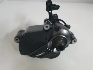Motor para bicicleta eléctrica Shimano EP8. Lleva 553 km, o sea que está impoluto. En el motor hay montado todo el eje de pedalier excepto las bielas y un guiacadenas. Solo con insertar unas bielas sería suficiente para hacer km otra vez.
