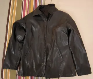 Chaqueta de polipiel para mujer talla 42 - Diseño moderno y versátil. - Cierre de cremallera. - Bolsillos frontales.