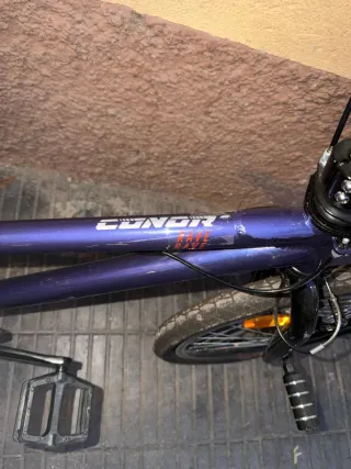 Bicicleta BMX Conor Rave en buen estado general. Cuadro resistente de acero, ruedas de 20”, ideal para BMX, street o uso urbano. Lleva pegs, frenos en funcionamiento y transmisión simple típica BMX, muy fácil de mantener. Bicicleta sólida, perfecta tanto para empezar en BMX como para moverse por ciudad. Lista para usar.