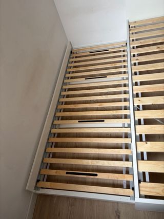 Se vende estructura de cama de matrimonio con cama nido. - Estructura principal de madera. - Base de listones de madera. - Cama nido integrada.