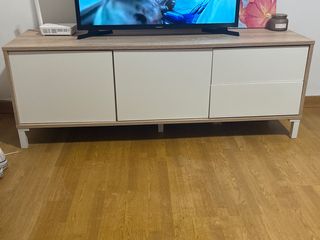 Mueble TV madera y blanco