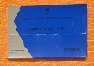 El Reverso de la moneda reproduce el emblema olímpico. Rodeando la moneda la leyenda XXV OLIMPIADA BARCELONA 1992 y el valor facial 2000 PTAS. El Anverso de la moneda reproduce la imagen superpuesta del Rey Don Juan Carlos I y el Príncipe Felipe. Rodeando la moneda la leyenda JUAN CARLOS I REY DE ESPAÑA y el año de acuñación 1990. Moneda de 2.000 Pesetas en Plata con una tirada de 52.524 unidades acompañada de su correspondiente estuche y certificado de garantía y autenticidad.