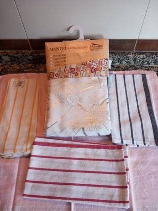1=Mantel antimanchas, HENGBO, Textil Medidas, 180× 180cm 3= Paños de cocina, 100×100= algodón Nuevo a estrenar Perfecto estado