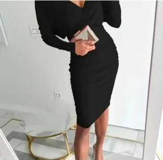 Vestido de poliéster con un diseño elegante. - Material: 100% poliéster. - Manga larga. - Corte favorecedor. Tiene esta descubierta. El tejido parece seda ..