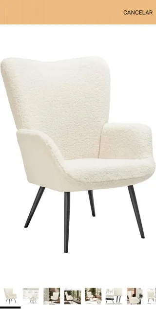 Acogedor sillón con un diseño moderno y confortable. - Tapicería de tela suave en color beige. - Patas de metal negro. - Estructura robusta y elegante.