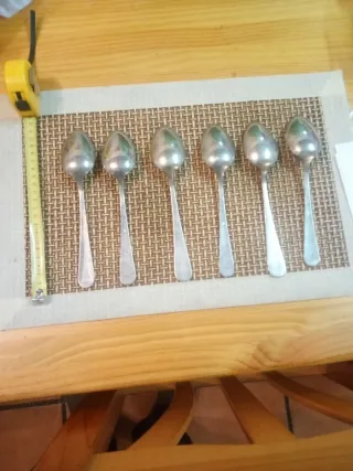 Juego 6 Cucharas alpaca y 5 Tenedores plata.