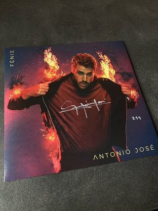 Vinilo del álbum Fénix de Antonio José. Edición firmada y numerada. - Portada con diseño de llamas. - Firma del artista. - Numeración de la edición limitada.