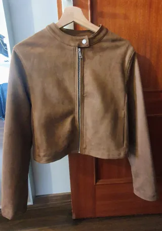 Chaqueta corta de ante sintético.🤎 Cierre de cremallera frontal. Cuello redondo con botón a presión. Solo hago entrega en mano en Tenerife ❗️