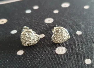 Pendientes de la marca Guess con forma de corazón.🤍 - Diseño con incrustaciones brillantes. - Acabado plateado. - Entrego en bolsita de terciopelo negro, ya que no tengo la original de la marca. Sólo hago entrega en mano en Tenerife❗️