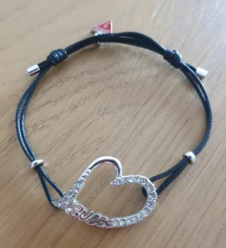 Elegante pulsera de la marca Guess con un diseño de corazón.🖤 - Correa ajustable de color negro. - Detalle de corazón con incrustaciones brillantes. - Cierre con nudos y topes metálicos. - No viene en su caja original, pero entrego en bolsita de terciopelo negro. Sólo hago entrega en mano en Tenerife❗️