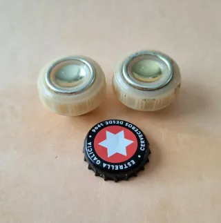 Dos botones para radio antigua. Son de color crema con detalles metálicos. - Son originales/ No copias. - Material: Plástico y metal. - Diseño usado en radios años 50 -lote número 42