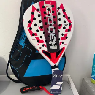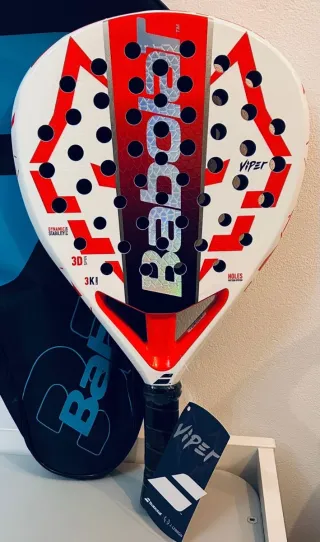 Vendo pala de pádel Babolat Lebron Viper 2025, nueva. - Modelo Viper, edición 2025. - Diseño atractivo en blanco y rojo. - Pertecta para jugadores de nivel intermedio-avanzado. - Incluye funda protectora. - Incluye 2 cuerdas roja y blanca