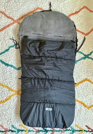 Saco universal para silla de paseo de bebé, ideal para mantener a tu pequeño abrigado. - Usado una vez y lavado. - Exterior negro. - Interior de forro polar gris carbón. - Cierre con cremallera. - Cordones ajustables en la parte superior.