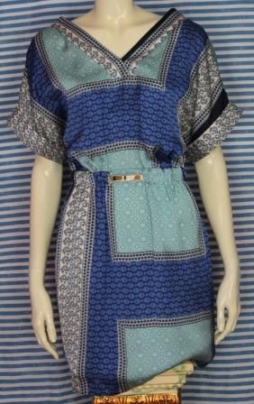 Vestido de Cortefiel con un estampado llamativo y colorido. - Diseño con escote en V. - Cintura elástica con detalle de cinturón. - Mangas cortas tipo mariposa. - Estampado patchwork con motivos geométricos y florales.