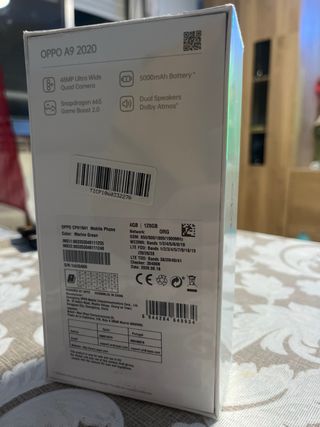 Teléfono móvil Oppo A9 2020 en color verde marino. Totalmente nuevo. - Capacidad de almacenamiento de 128 GB. - Memoria RAM de 4 GB.