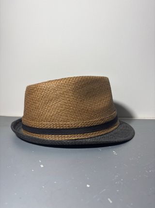 Sombrero de paja con un diseño moderno y versátil. - Material de paja tejido. - Banda decorativa negra. - Estilo fedora. - Sin usar, como nuevo