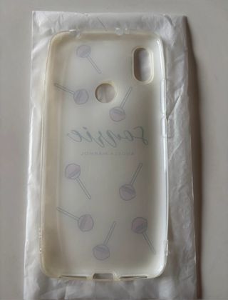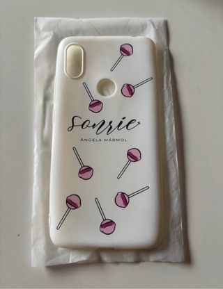 Funda protectora para Xiaomi Redmi S2 con un divertido diseño de piruletas. - Color blanco. - Diseño de piruletas rosas. - Texto Sonrie y ÁNGELA MÁRMOL. - Como nuevo - De silicona