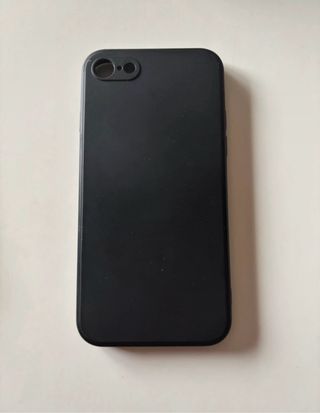 Funda protectora para iPhone SE 2020 en color negro. - Diseño que cubre la parte trasera y los laterales del teléfono. - Apertura para la cámara y el logo. - Material suave al tacto. - De silicona - Como nuevo