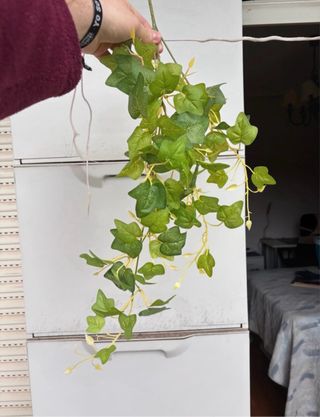 Dos plantas artificiales tipo enredadera, ideales para dar un toque verde a cualquier espacio. - Hechas de plástico. - Color verde.