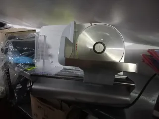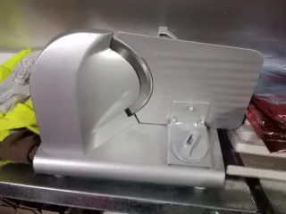 Cortafiambres en excelente estado, casi sin uso. - Diseño plateado. - Cuchilla circular de acero inoxidable. - Protector de seguridad transparente.