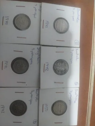 Conjunto de monedas de plata de Australia, acuñadas entre 1940 y 1950. - Monedas de plata australianas. - Años: 1940, 1941, 1942, 1947, 1950.5 monedas de Australia y 1 de Inglaterra