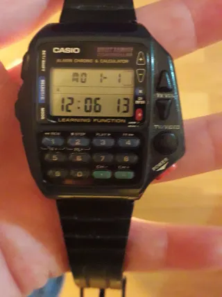 Reloj Casio vintage con funciones de calculadora y tele. Un modelo retro y funcional. funciona perfecto como se puede apreciar lleba la makinaria como nueva - Diseño en color negro. - Correa ajustable. - Pantalla digital.