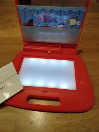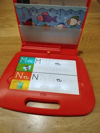 Juego educativo para niños pequeños, ideal para aprender las letras. - Incluye tarjetas con letras mayúsculas y minúsculas. - Diseño con dibujos infantiles. - Marco rojo resistente.