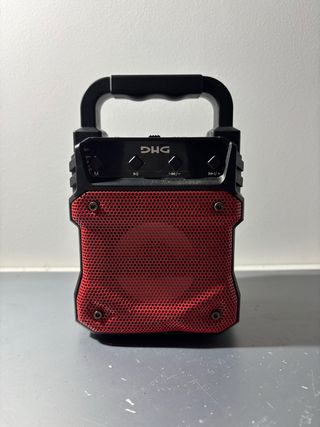 Altavoz portátil con conectividad Bluetooth. - Diseño moderno en color negro y rojo. - Asa superior para facilitar su transporte. - Altavoz portátil con cargador - Usado un par de veces - Marca DHG E-341 - Color rojo y negro - Altavoz bluetooth