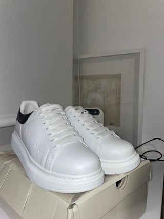 Zapatillas de Alexander McQueen en blanco y negro. - Diseño clásico. - Detalle en el talón.
