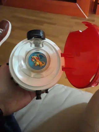 Lanzador de canicas con diseño de Charizard. Nintendo 1999 - Incluye una figura de Charizard. - Tapa roja. - Base blanca.