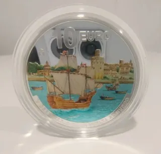 Conmemora el V Centenario de la Vuelta al Mundo con esta moneda de 10 euros de emisión especial. - Plata de alta calidad. - Diseño conmemorativo 'La Llegada'. - Emisión 2022. - Presentada en su caja y con certificado.