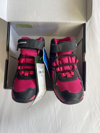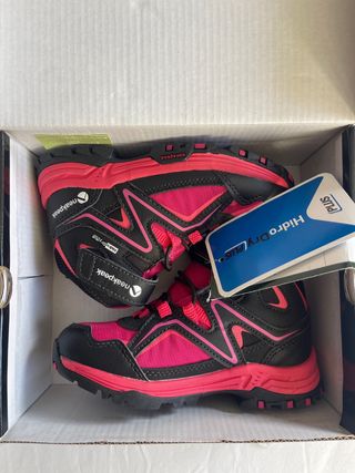 Botas de montaña para niña en color rosa y negro. Perfectas para actividades al aire libre. - Cierre de velcro y cordones. - Suela de goma. - Diseño deportivo.