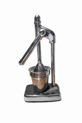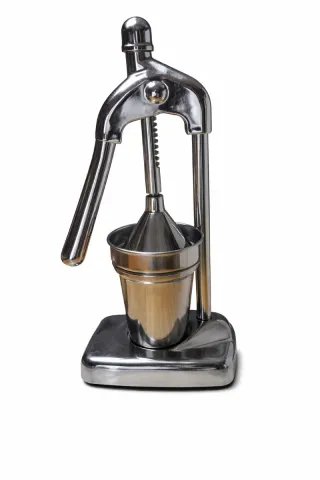 Exprimidor manual de diseño clásico, perfecto para obtener zumos frescos. - Fabricado en acero inoxidable. - Base estable y robusta. - Palanca de presión ergonómica.