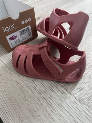 Cangrejeras de la marca Igor en talla 23. Son de color rosa y perfectas para el verano. - Material de goma. - Cierre de velcro. - Diseño abierto.