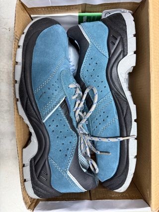 Calzado de seguridad Scarpa en tonos azul y negro. Diseñados para ofrecer protección y comodidad. - Material exterior de ante. - Cierre con cordones. - Suela de goma resistente.