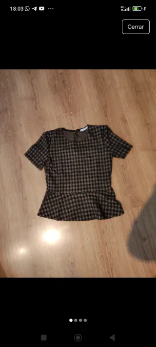 Blusa de manga corta con estampado de cuadros. - Diseño con peplum. - Cierre de cremallera en la espalda.