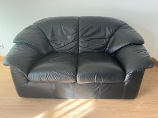 Sofá de dos plazas con un diseño moderno y confortable. Su tapicería de piel le da un toque elegante a cualquier espacio. - Tapicería de piel. - Dos plazas. También disponible en 3 plazas.