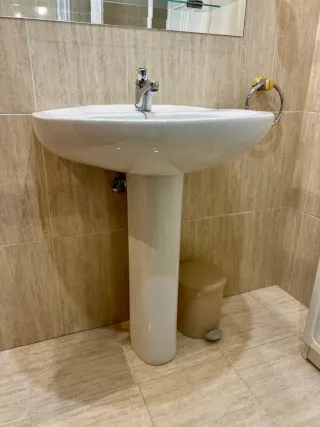 Lavabo completo con pie y grifo. - Fabricado en cerámica y metal. - Diseño moderno y funcional.