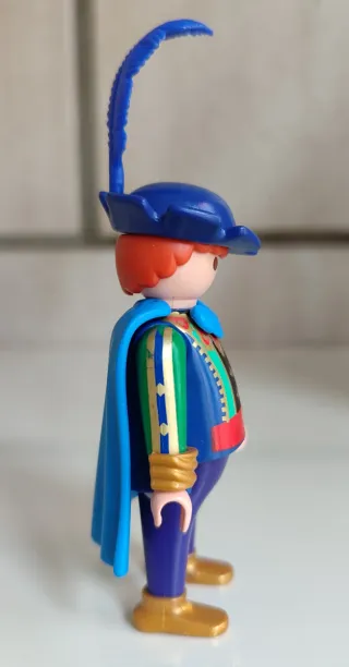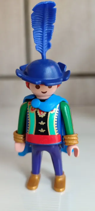 Figura de Playmobil representando a un conde medieval. - Sombrero azul con pluma. - Chaleco detallado con adornos dorados y rojos. - Capa azul. - Pantalones morados. - Botas doradas. Hago envío cuidado y en 24 horas, excepto festivos. Gran variedad de artículos en mi perfil para poder hacer lote y ahorrar en gastos de envío. Diez por ciento de descuento en lotes a partir de 20 euros.