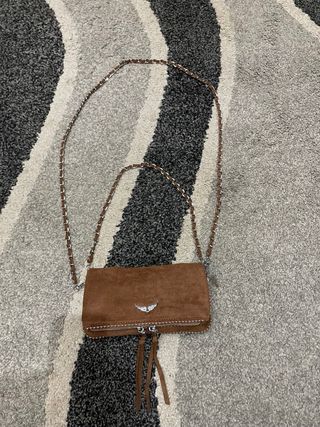 Bolso de mano Zadig & Voltaire en color marrón. - Material: Ante - Adorno de tachuelas plateadas - Detalle de alas plateadas en la solapa - Cierre de cremallera - Dos tiras de flecos decorativas