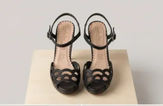 Elegantes sandalias de tacón alto con un diseño abierto y detalles calados. - Marca: Carolina Boix - Color: Negro - Cierre con hebilla - Tacón de altura media - Diseño con recortes decorativos
