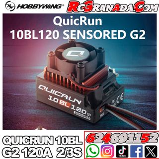 Variador electrónico de velocidad (ESC) Hobbywing QuicRun 10BL120 G2 para motores brushless. - Modelo: QuicRun 10BL120 G2. - Tipo de motor: Brushless. - Voltaje: 2S-3S. Mugen, awesomatix ,mst,Kyosho, xray, associated, losi, Arrma, Corally,hpi, lrp, tekno, REVED,traxxas,Tamiya,sanwa,futaba,sworkz,Hudy,yokomo,reved,Absima,skyrc,hobbywing, srt, hsp, hyper, hobao, Crawler rc, Coche radiocontrol, Coche teledirigido, ftx,Brushless, fastrax, axial,Procircuit , bolsa , maleta , OGO , ULTIMATE , ULTIMATE RACING