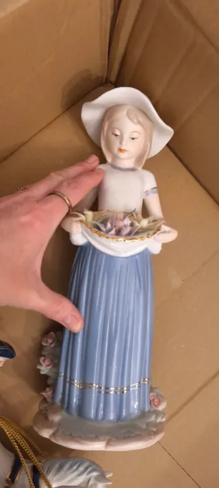 Preciosas figuritas de porcelana - muñeca 5€ - carruaje 10€ - caja de figuras y café 20€
