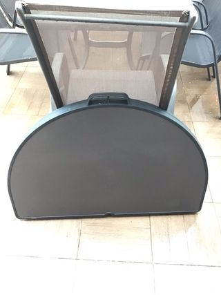 Base robusta para mesa con un diseño moderno y elegante. Ideal para dar un toque industrial a tu hogar o negocio. - Fabricada en metal resistente. - Acabado en color negro y gris. Vendo porque compré 2 y solo utilicé una. Podéis ver como queda con un tablero redondo.