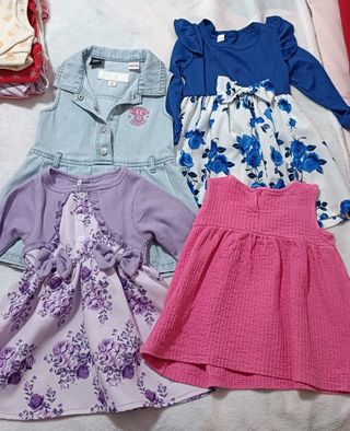 Conjunto de ropa variada para niña. - Bodys,camisetas manga larga y corta,pantalones,chaquetas,calcetines,vestidos.... -Tallas 9-12-18 meses