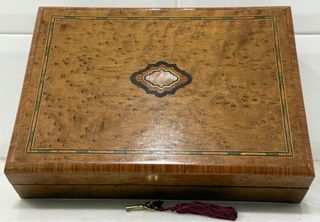 Antigua y exclusiva caja de pintura francesa de mediados del siglo XIX realizada en madera noble raíz de tuya con trabajo de marquetería y rosetón en nácar, con un interior compartimentado , pastillas de diferentes colores con la marca francesa impresa y cajón inferior para el caballete. Una verdadera joya de colección única. Véanse las fotografías para hacerse una mejor idea de los detalles que forman parte de la descripción. Medidas: 6,5 cms de alto, 26,5 cms de ancho y 19,5 cms de fondo. ENVIAMOS CON TRANSPORTE Y EMBALAJE PROFESIONAL.