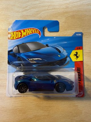 Coche de juguete Hot Wheels del modelo Ferrari SF90 Stradale. - Color azul metálico. - Sin abrir. en perfecto estado. - Parte de la colección Ferrari.