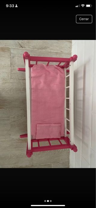 Preciosa minicuna de madera rosa y blanca sin ningún roce ni rasguño color intacto tela incluida