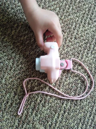 Cámara de fotografía digital en color rosa, diseñada para los más pequeños. Incluye una correa para facilitar su transporte. - Diseño compacto y ligero. - Correa de seguridad incluida. - Cable cargador No tiene caja.